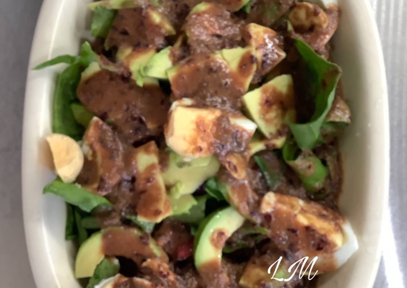 - Echar todo los ingredientes de la ensalada en una ensaladera y verter por encima la vinagreta de cerezas.