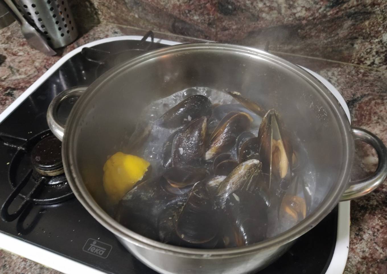 - Tapamos la cazuela echamos un limón cortado y llevamos a fuego medio. Poco a poco los mejillones se irán abriendo, id meneando de vez en cuando la cazuela. Cuando estén todos abiertos, ¡están listos!