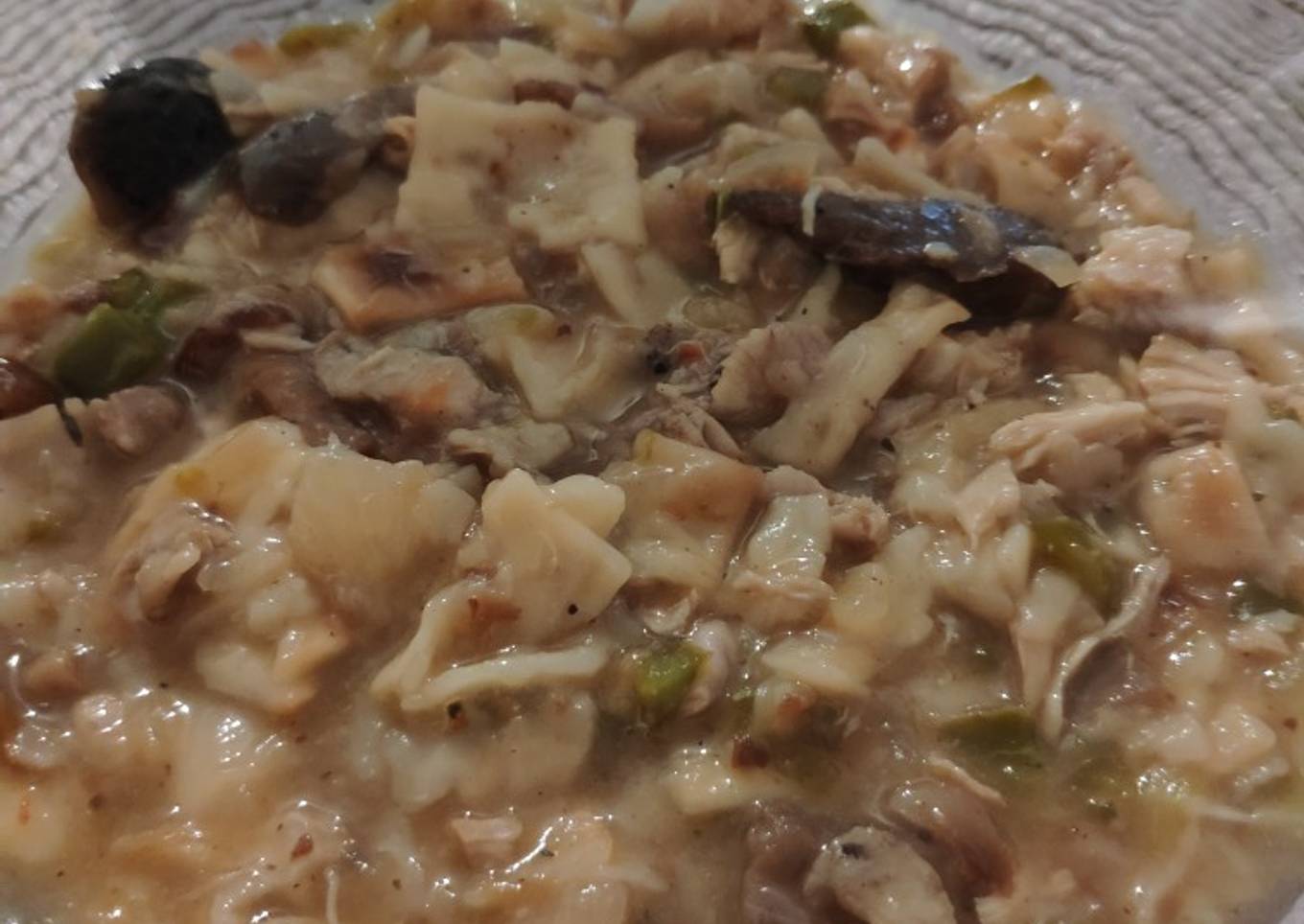 - A mí me gusta echar la torta en crudo, otros prefieren hacerlo ya en el caldo, eso ya por gustos. Pero ahora una vez este la torta y el caldo en la cazuela, añadimos las setas y se tiene hirviendo durante 10 min y removiendo de vez en cuando que no se pegue. Última oportunidad para rectificar de.especias o sal.