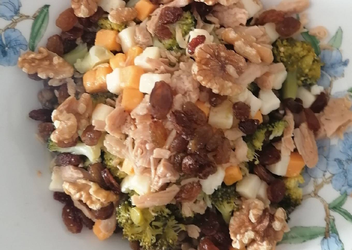 - Finalmente, ponemos las tiras de pollo, las pasas, el queso, la nueces y echamos aceite, sal y vinagre