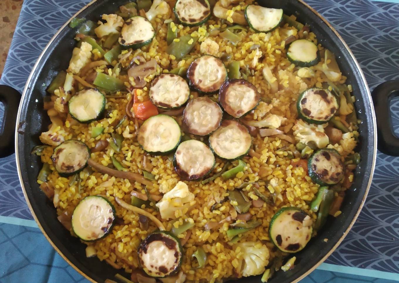 Este fin de semana he sustituido el "arròs al forn" por un arroz menos graso pero no menos rico. Tenía verduras del huerto recién cogidas y otras congeladas ( porque quiero ir descongestionando el congelador, ya que el huerto ya empieza a mover y pronto necesitaré más espacio), así que he decidido con algunas de ellas hacer esta rica paella. Puedes hacerlo con las verduras que tengas o más te gusten. Ha quedado espectacular.