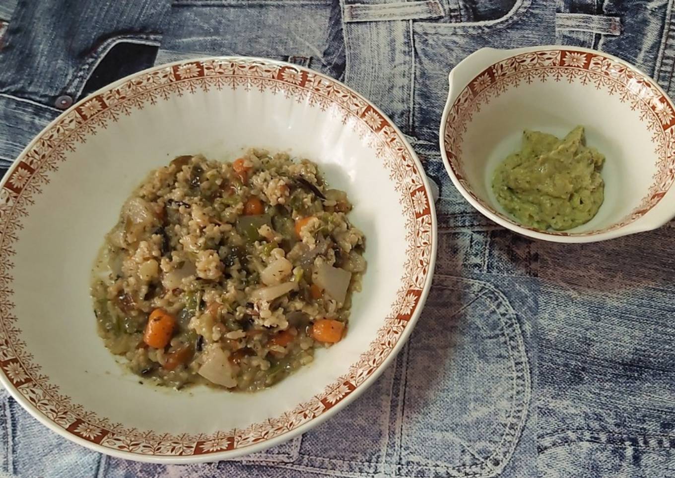 - Cuando esté el arroz cocinado apagamos el fuego y lo dejamos reposar unos minutos. Y a continuación lo pasamos a una fuente que atempere y este fresquito para comer. Se puede acompañar con un buen alioli, mayonesa, una salsa de tomate o como es mi caso tenía en la nevera algo de paté de calabacín y ha sido mi elección. Boon profiiit!!!