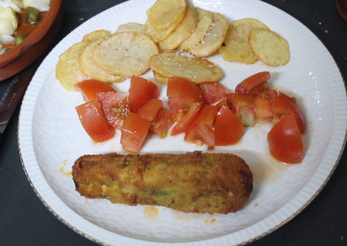 - Colocar un pepino en cada plato junto al tomate y las patatas.