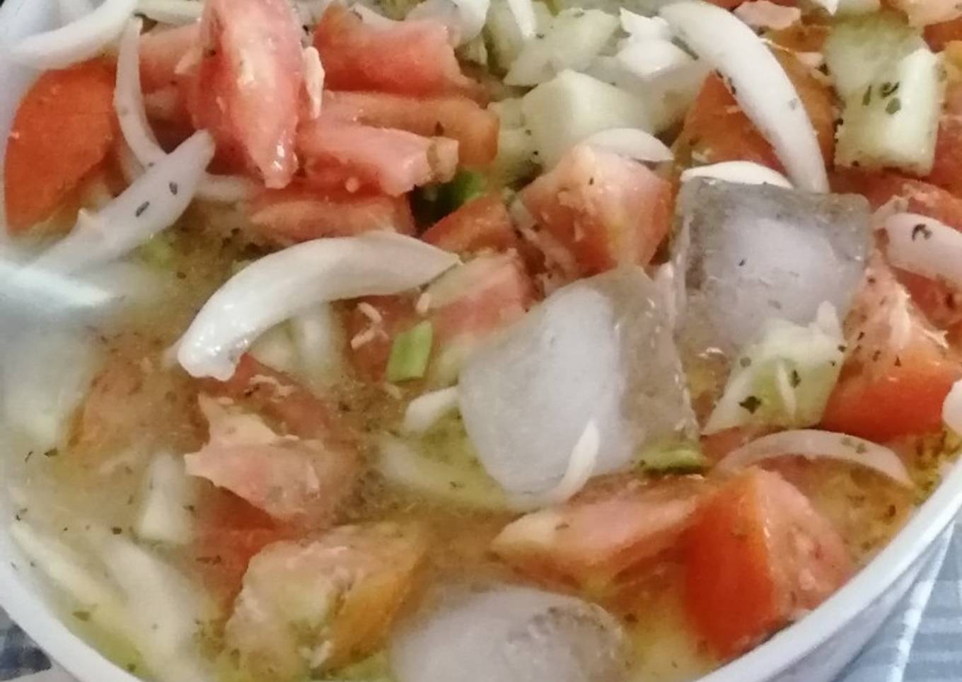 Esta pipirrana fresquita así la hace mi abuelo y está súper riquísima. Y más en el verano.