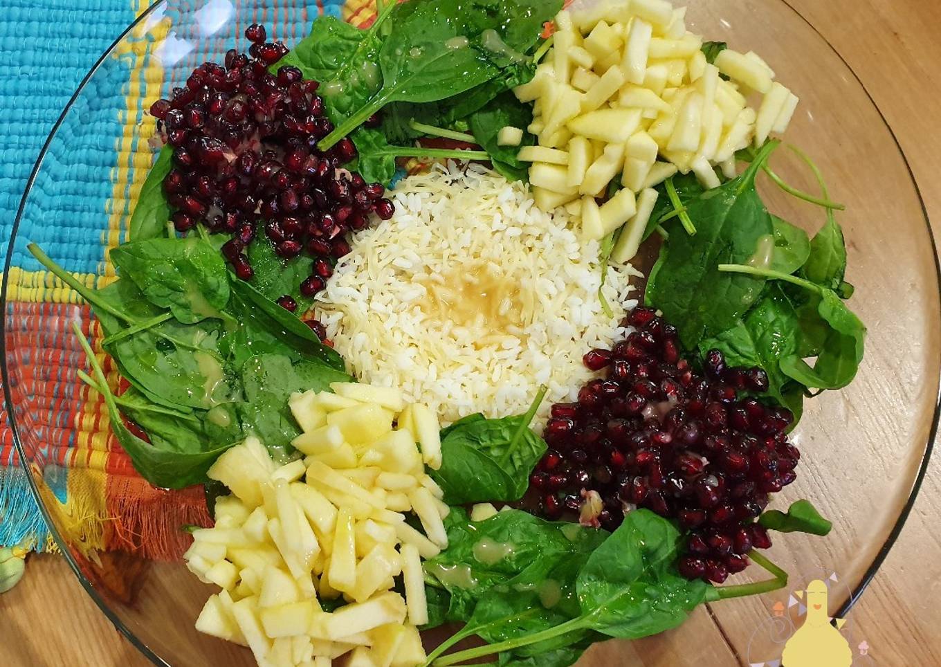 Steps to make to make *Ensalada de arroz con granada y manzana*