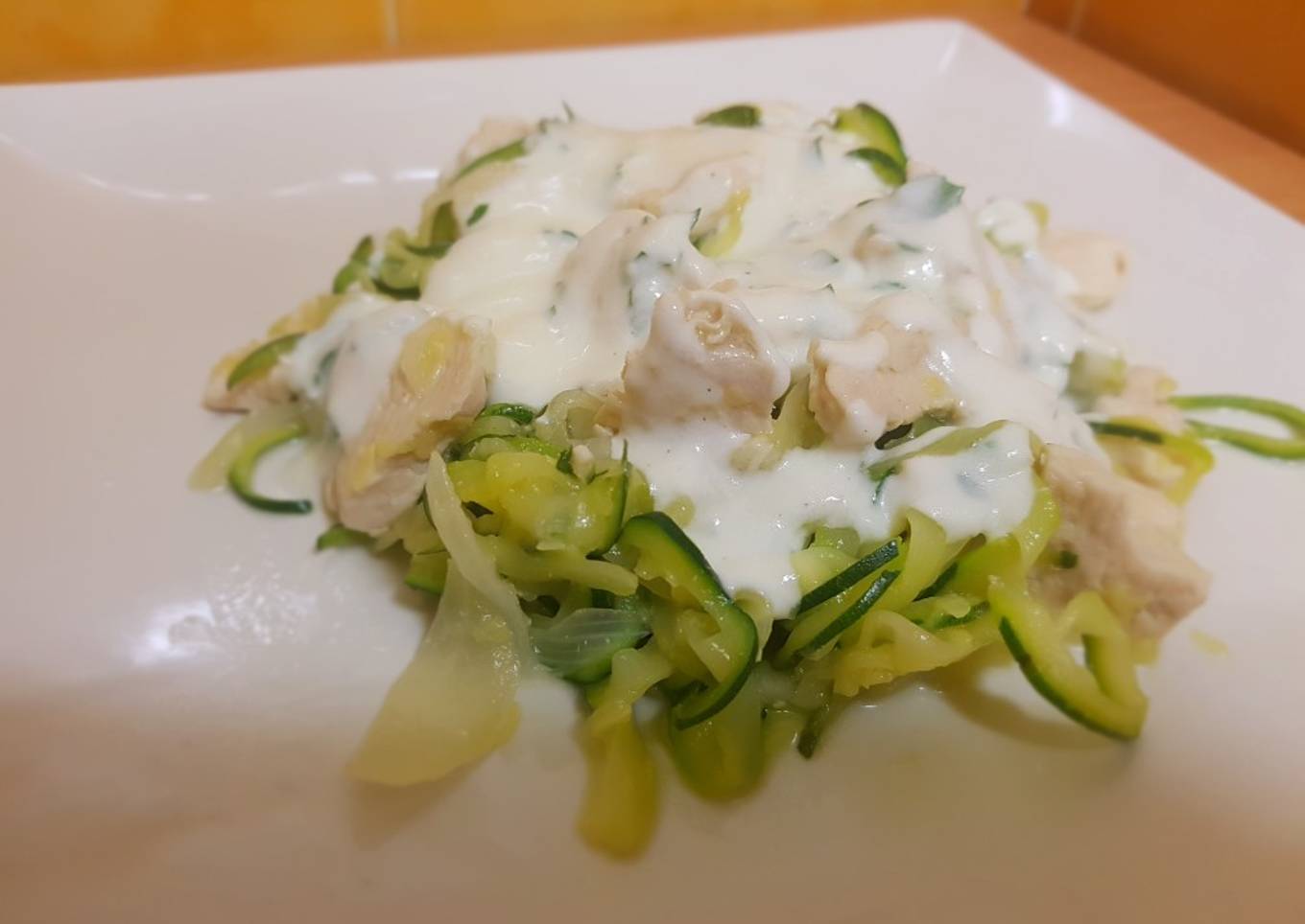 Steps to make to make Espaguetis de calabacín con pollo y salsa de yogur