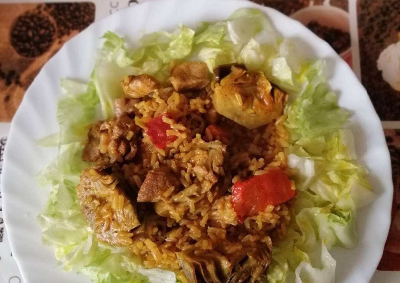Arroz integral con pavo y alcachofas y corona de iceberg