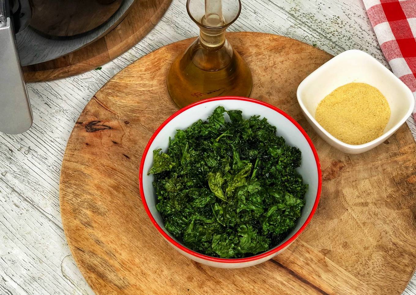 Chips de Kale sabor a queso con Airfryer, snack saludable
