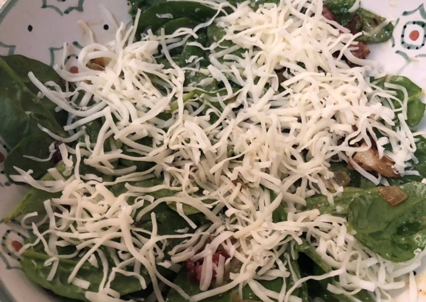 - Mezclar la salsa, las espinacas y el sofrito de cebolla y jamón. Espolvorear con queso rallado y a comer!