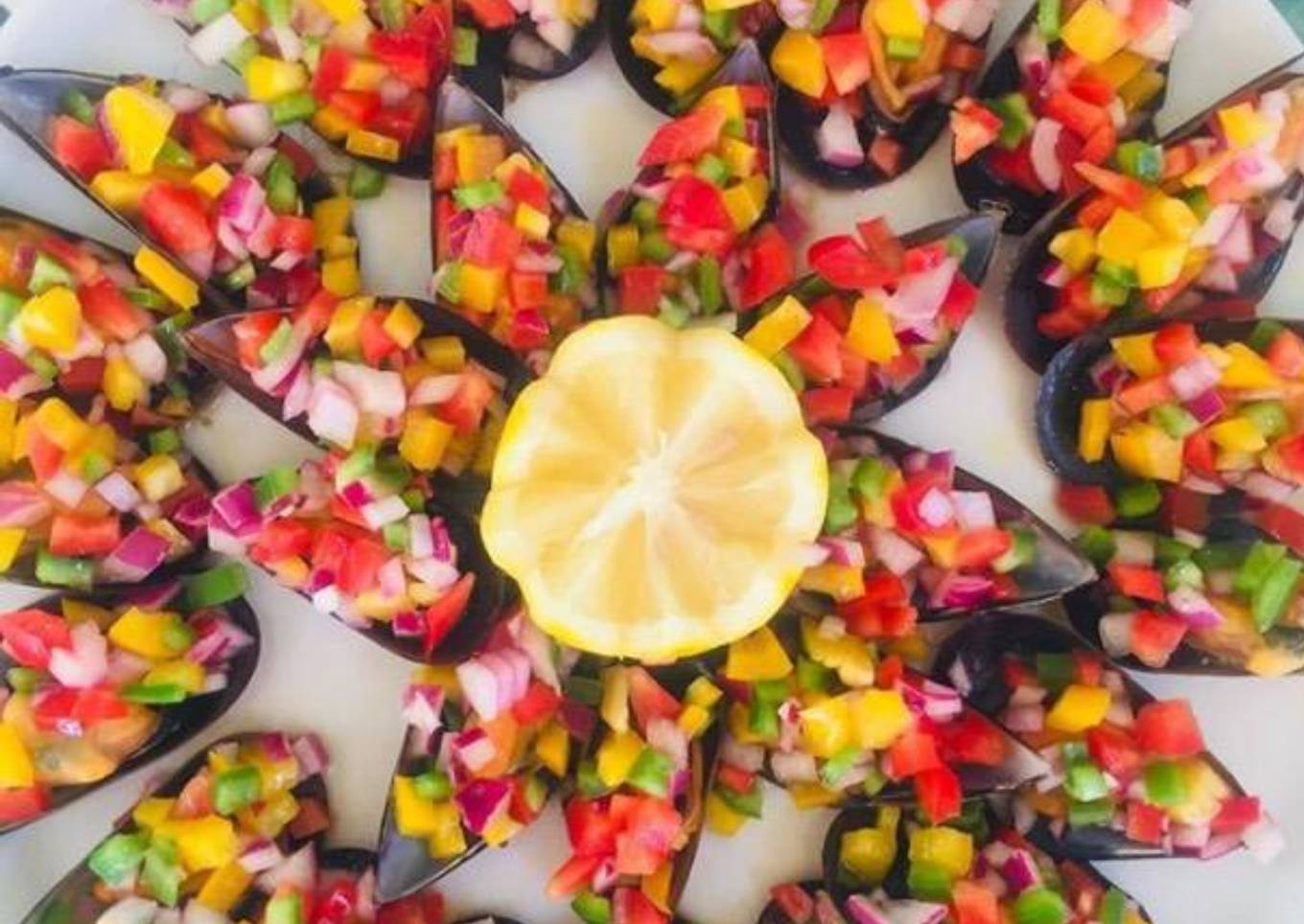 Mejillones en vinagreta a los tres pimientos