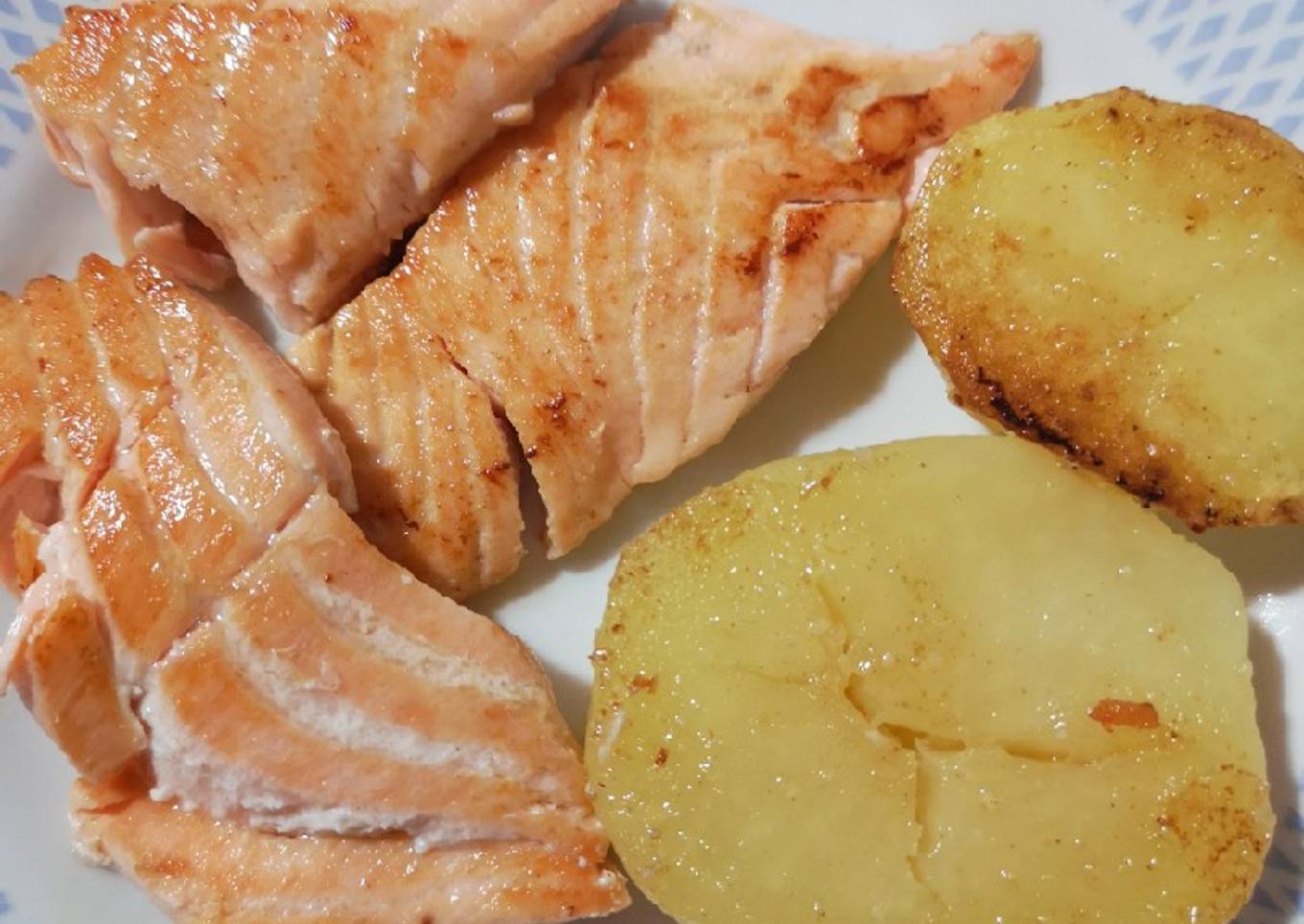 Steps to make to make Salmón a la plancha con patatas braseadas